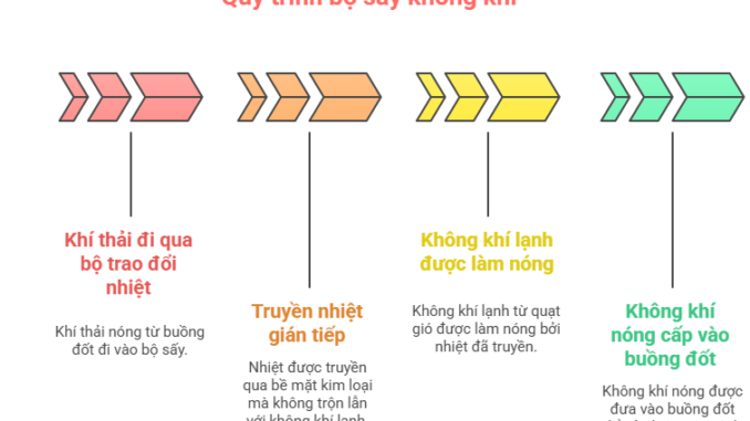 Nguyên lý hoạt động của bộ sấy không khí dựa trên sự trao đổi nhiệt giữa khí thải nóng và dòng không khí lạnh, qua đó tận dụng nhiệt thừa và tăng hiệu suất đốt.