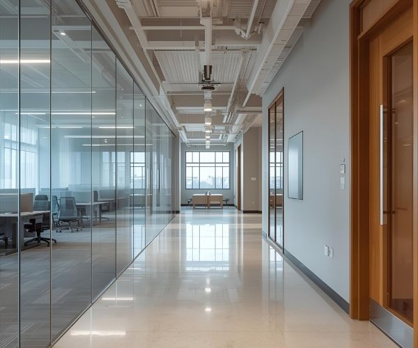 Người kiểm tra cần chú ý đến cảm giác tổng thể khi bước vào: không khí có thông thoáng không, có mùi ẩm mốc hoặc mùi hóa chất còn tồn đọng không, ánh sáng phản chiếu trên các bề mặt có đều và trong không. Sàn nhà, tường, kính, trần đều phải sáng sạch, không còn dấu vết của bụi hoặc nước đọng.
