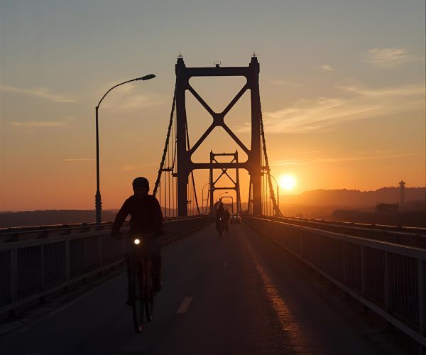 We rode over the bridge as the sun was setting. – Chúng tôi đi qua cây cầu khi mặt trời lặn.