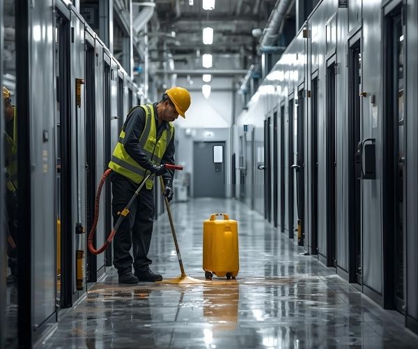 Cũng có những tình huống đặc biệt, chẳng hạn như sau thi công hoặc sự cố tràn dầu, ngập nước, máy móc sẽ giúp xử lý khối lượng lớn chất bẩn ban đầu, sau đó đội ngũ nhân viên thủ công hoàn thiện công đoạn chi tiết để đảm bảo tính thẩm mỹ.