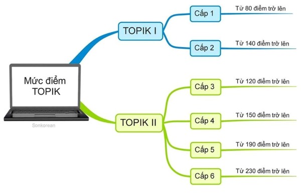 Kỳ thi TOPIK gồm hai loại chính: TOPIK I (cấp độ sơ cấp) và TOPIK II (trung cấp – cao cấp). Mỗi cấp lại được chia nhỏ thành nhiều bậc: